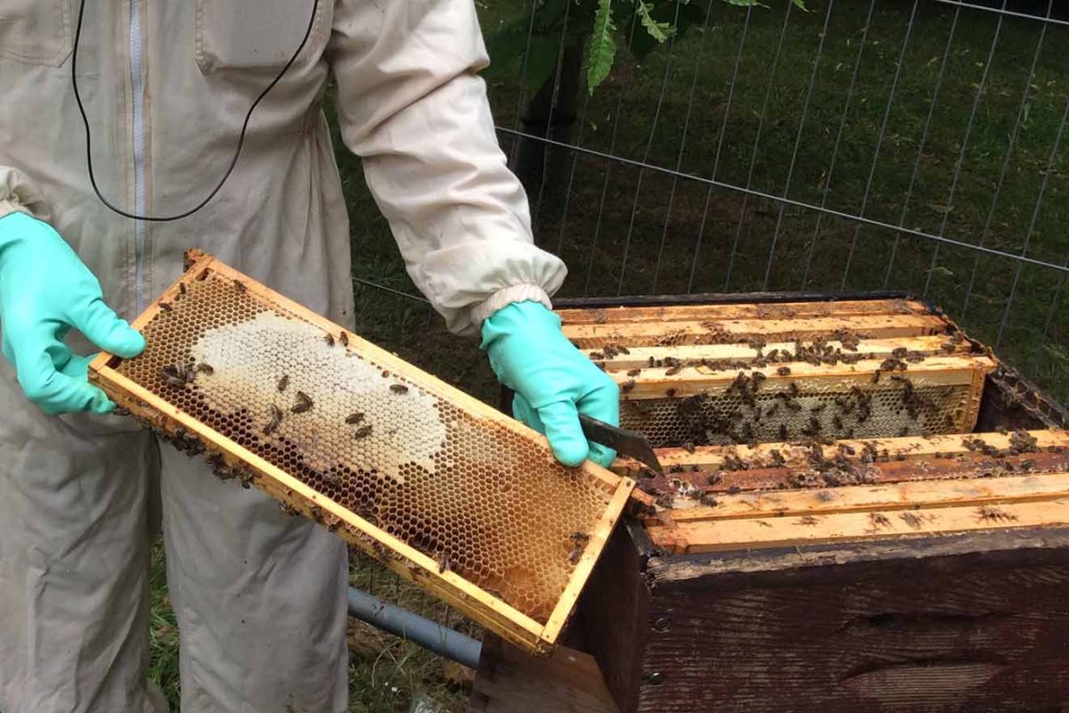 There is so much that can be learned by adults and children going the distance and putting on specialist beekeeping PPE and observing the interior of a colony.
